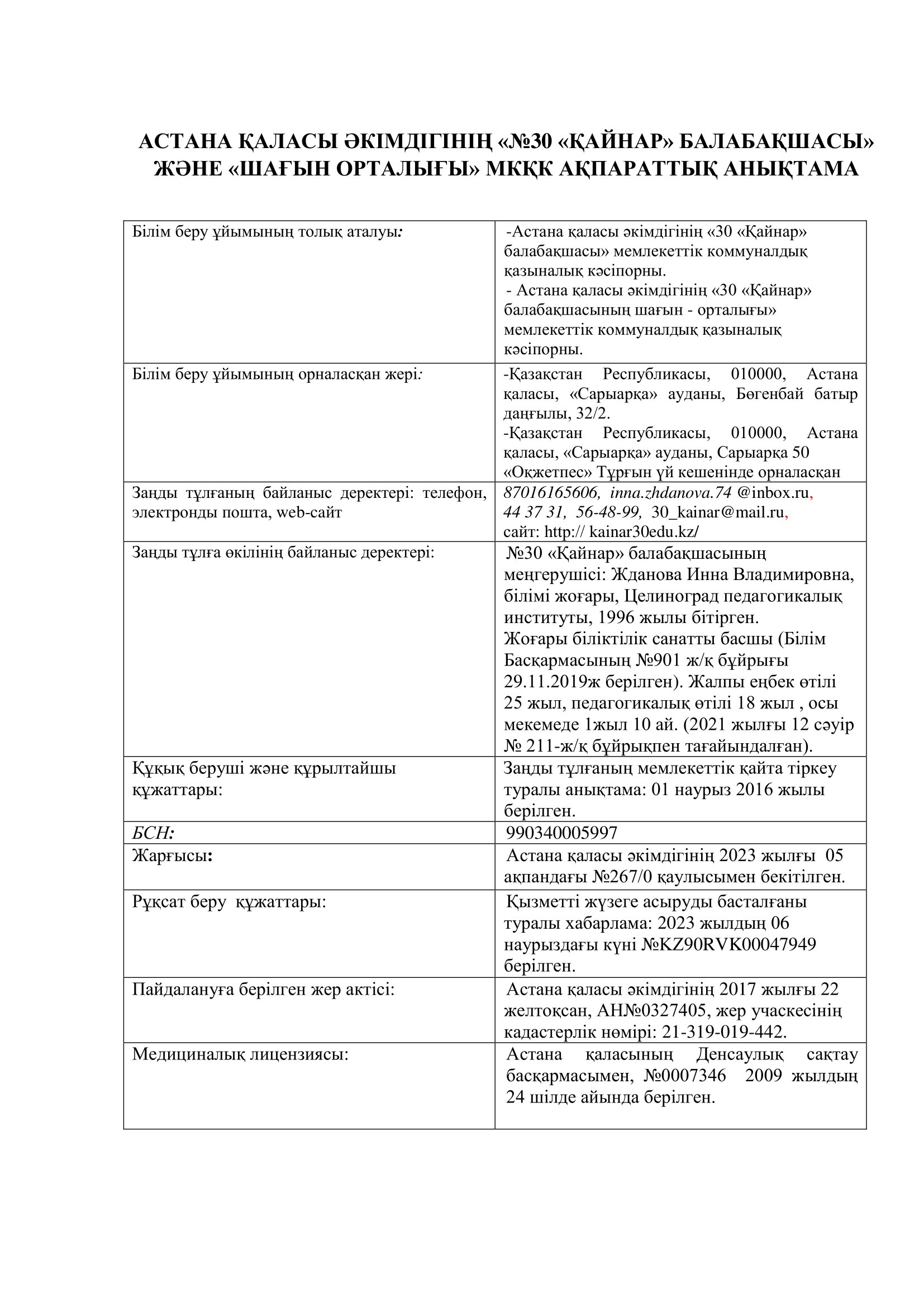ГККП "Ясли-сад № 30 "Қайнар"